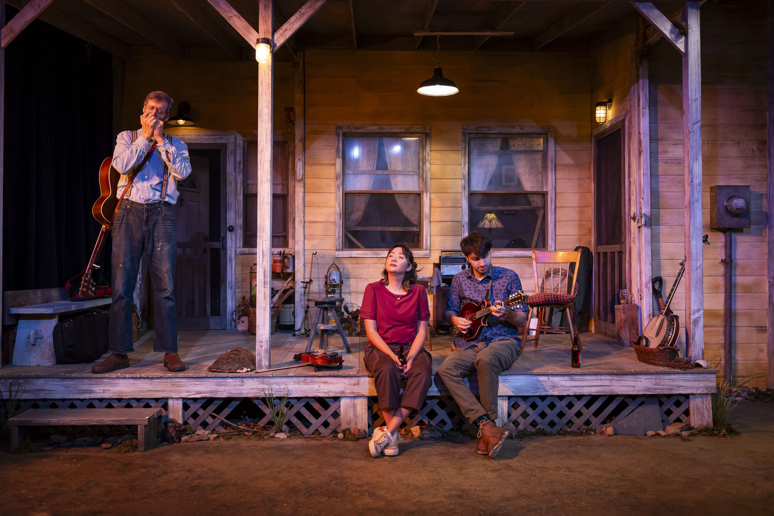 “Beginning with edges jagged enough to draw blood, they end like sea glass – polished into a rough beauty.” – Chicago Sun-Times; “A musical treat to the ear and a soulful treat to the heart.”  -Evanston RoundTable; “A fabulous hootenanny… great pride, great healing – but most of all, great music.” Pages on Stages; A well-acted, well-sung, well-played, beautiful, heartfelt story that will make you smile, laugh, tap your feet – and possibly shed a tear.” Front Row Center; “Powerful. As many people as possible should see this play.” The Knockturnal; It’s everything a stellar musical is: thought-provoking, entertaining, emotionally stirring, and something that imparts a feeling of growth.” The Bluegrass Situation; “The Porch on Windy Hill is a pleasure!” OffOffOnline; “Entertaining and authentic. Great music and a timely, touching play. Acting and musicianship are excellent. Songs are skillful, entertaining, and authentic.” – Theatre Pizzazz.